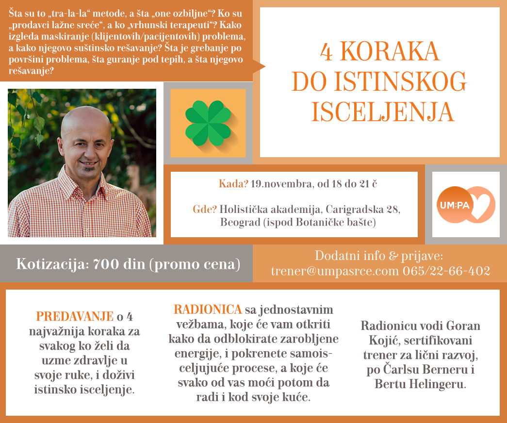 Šta su to „tra-la-la“ metode, a šta „one ozbiljne“? Ko su „prodavci lažne sreće“, a ko „vrhunski terapeuti“? Kako izgleda maskiranje (klijentovih/pacijentovih) problema, a kako njegovo suštinsko rešavanje? Šta je grebanje po površini problema, šta guranje pod tepih, a šta njegovo rešavanje?